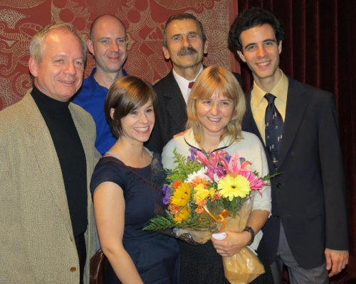 Od lewej: Beata Gołembiowska-Nawrocka i Mariusz Wasilewski Relacja ze spotkania: Miesiąc temu Anna Ronij przyprowadziła do naszego konsulatu na spotkanie z Janem Jarczykiem młodego pianistę Pablo Miro-Cortez, który ostatnich 8 lat spędził w Polsce, gdzie ukończył krakowską Akademię Muzyczną (mówi pięknie po polsku). Zaprosiłem go, aby wystąpił w ramach ilustracji muzycznej na dzisiejszym spotkaniu. Pan Pablo wykonał na fortepianie pięć utworów: trzy romanse op.28 Roberta Schumanna oraz 2 z 6 intermezzi op.45 Maxa Regera Poziom, jaki prezentuje Pablo Miro-Cortez zasługuje na szczególne uznanie. Do Montrealu przybył kilka miesięcy temu, aby kontynuować studia - robi obecnie doktorat na Universite de Montreal.