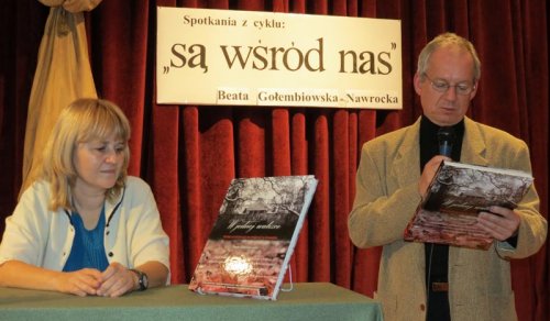 Beata Gołembiowska-Nawrocka i Jerzy Adamuszek W trakcie spotkania poprosiłem o krótką wypowiedź córkę pani Beaty, Tinę, Jej partnera, Mariusza oraz przyjaciół: Bożenę Szarą, Bogusie Milewską i Halinę Dudyk. Wszyscy z jak największym szacunkiem odnieśli się do osobowości bohaterki spotkania i do Jej książek.
